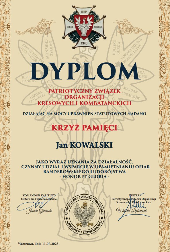 Krzyż Pamięci za Wsparcie Budowy Pomnika "Rzeź Wołyńska"