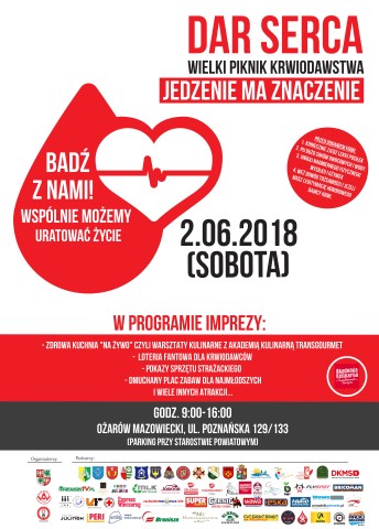 AKCJA "DAR SERCA" - oddaj Krew i uratuj życie odbędzie się w Ożarowie Mazowieckim w dniu 10 czerwca 2017r.